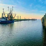 The beachfront Luettje Deichvilla Backbord Dorumer Neufeld villa is located a 10-minute drive from St. Peter und Paul-Kirche and invites guests to enjoy a terrace.